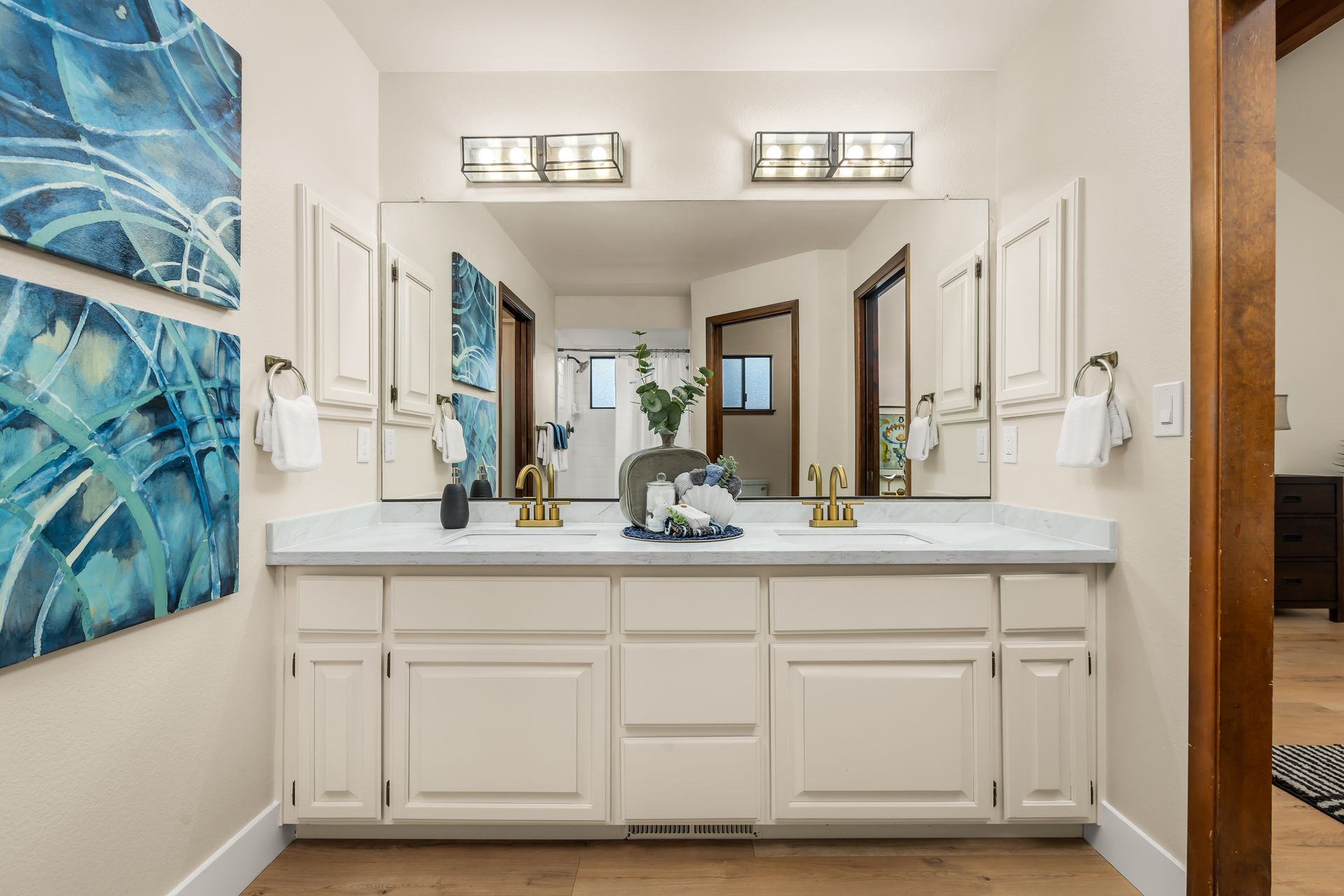 - Dual sinks with new quartz countertops and faucets