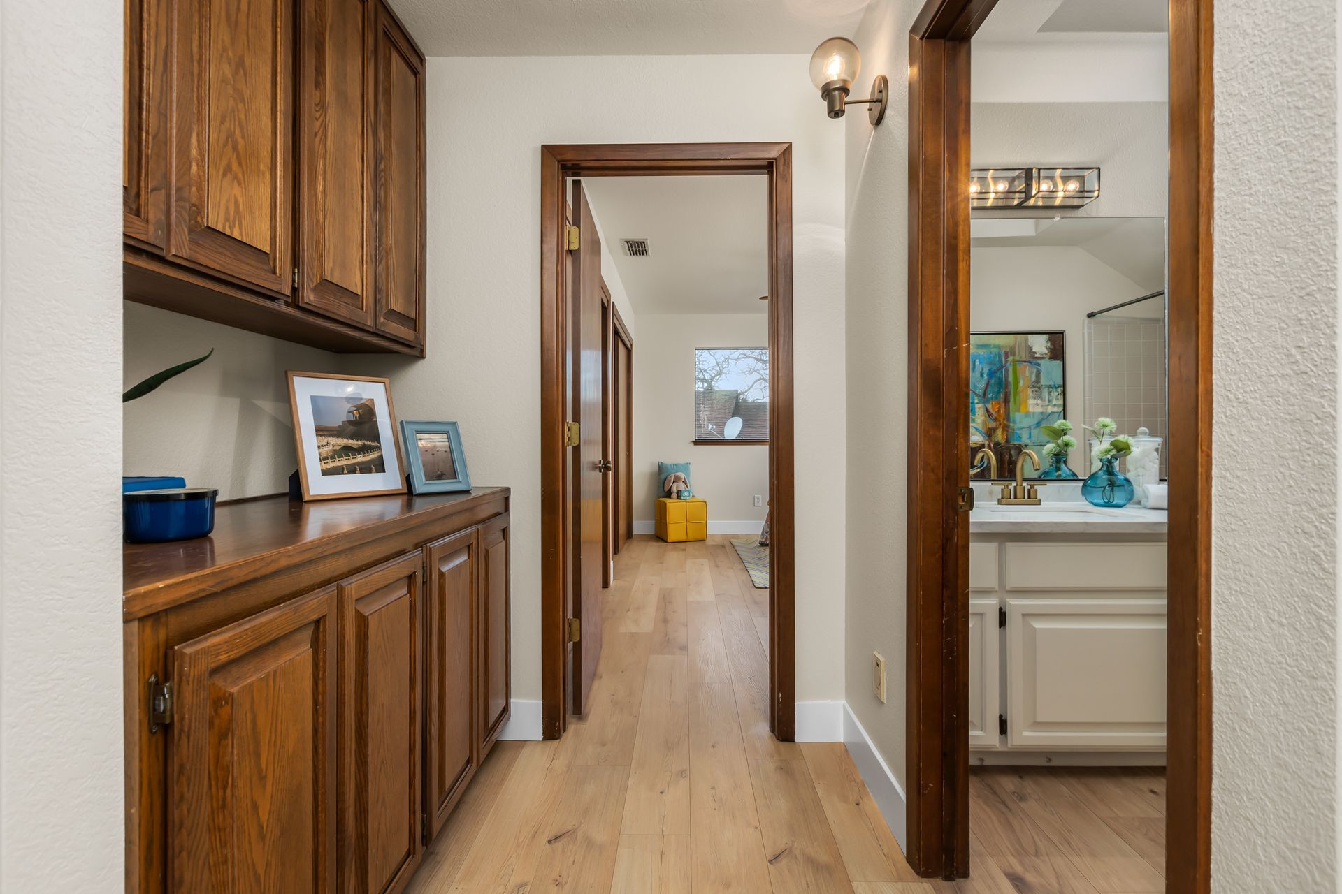 - Hardwood floors and built-in cabinetry