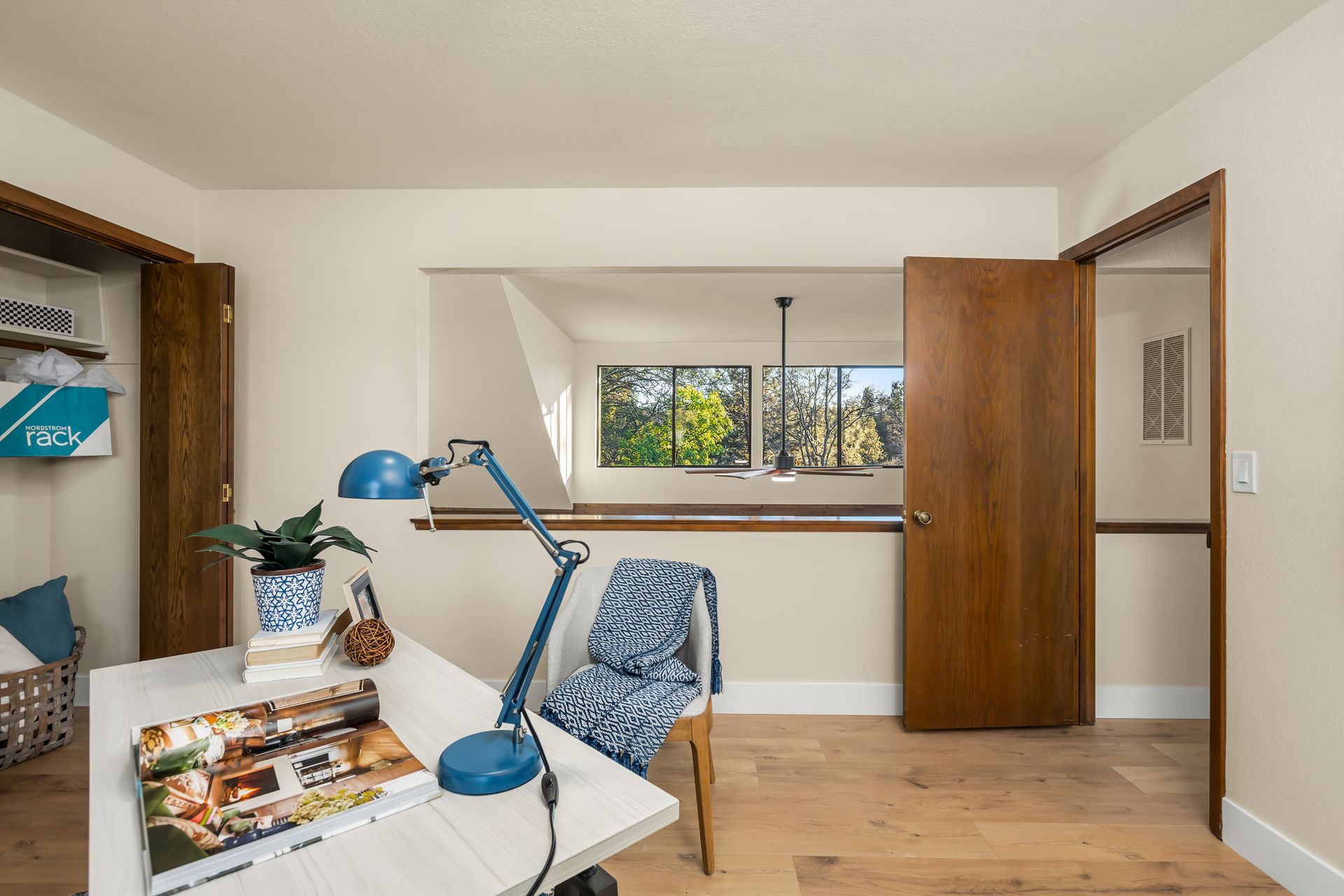 - Loft bedroom or office with closet overlooks the great room and backyard views