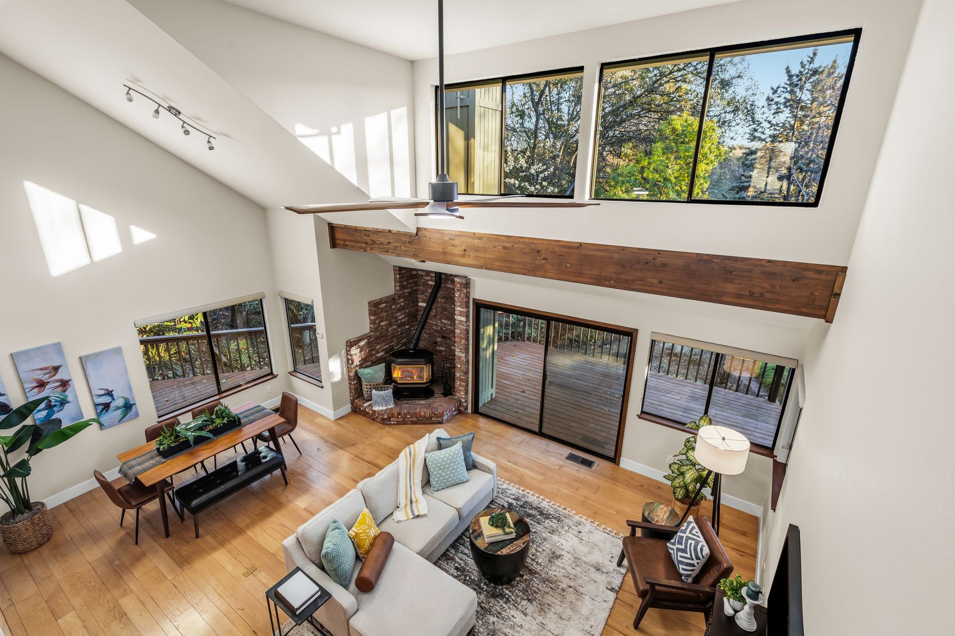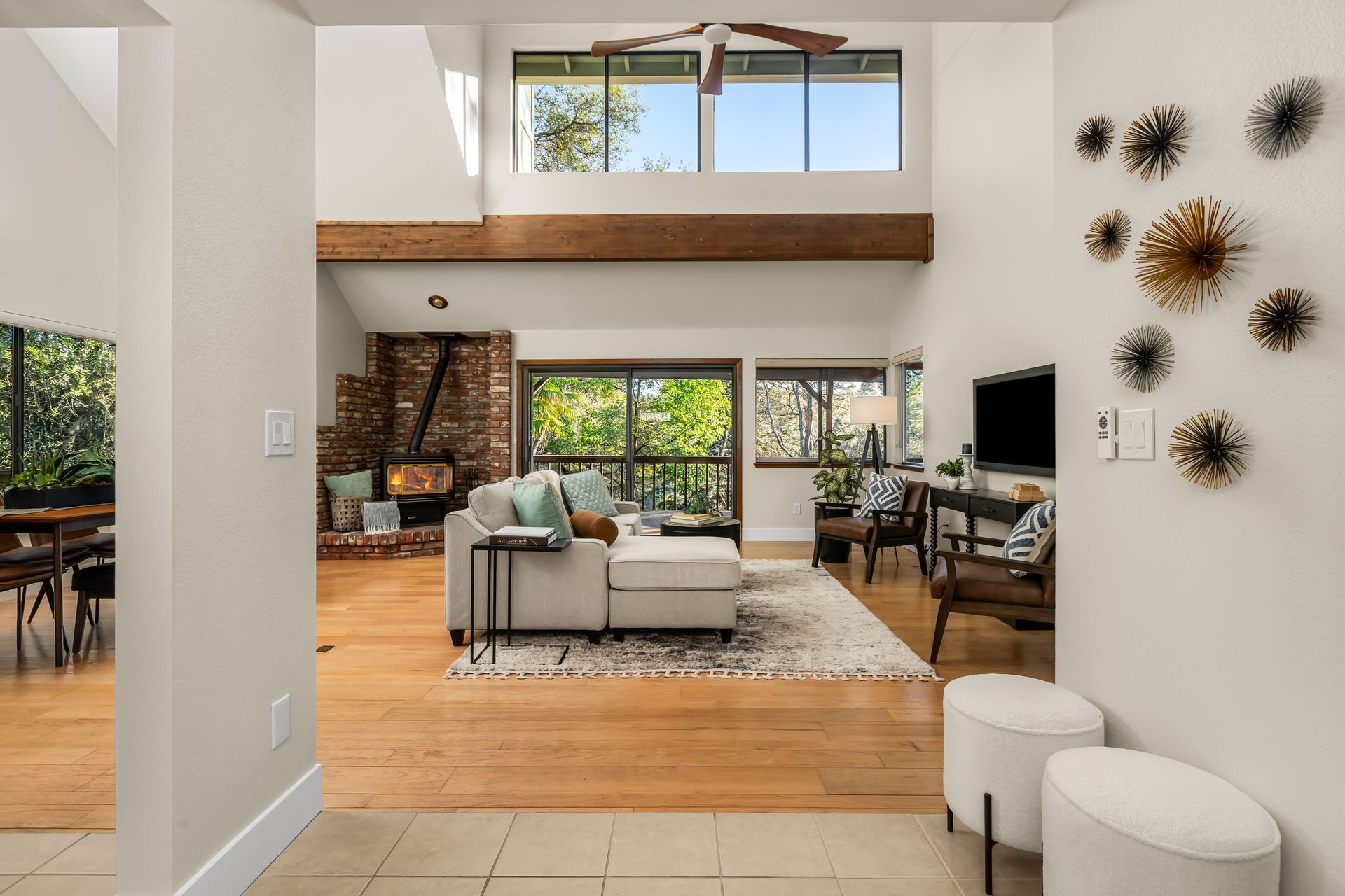 - Vaulted ceilings with exposed beam and new wood ceiling fan