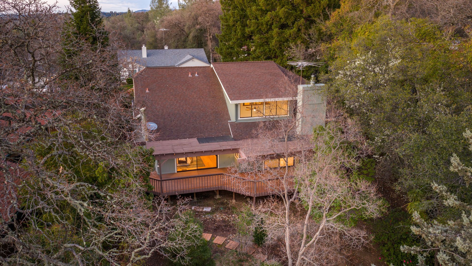 - Large deck overlooking the spacious and private .31-acre lot