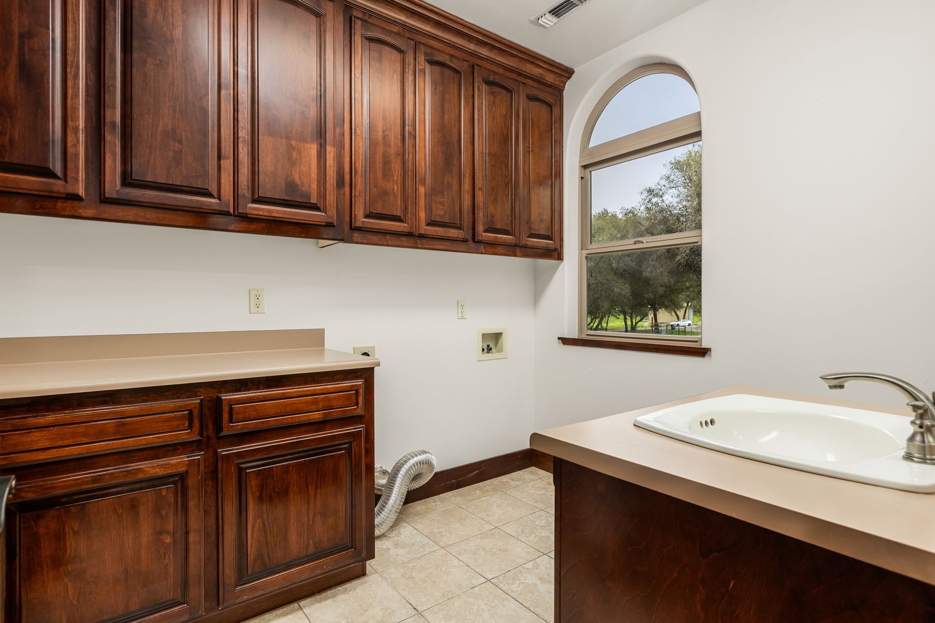 - Laundry room/ half bath with upper and lower cabinets, sink, 220 outlet & additional pantry closet