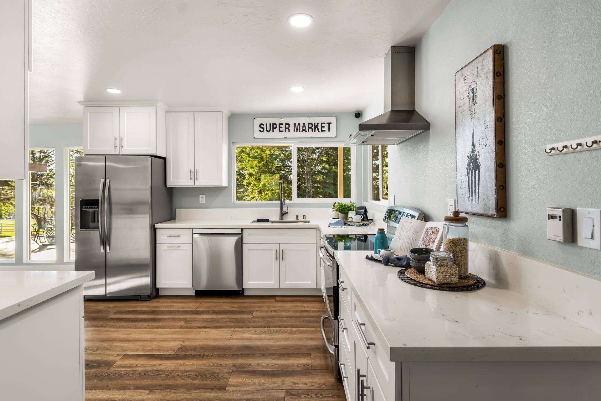 - 2024 new kitchen and laundry cabinetry (wood shaker style with soft-close doors, pull-outs & extra-deep pot drawers)