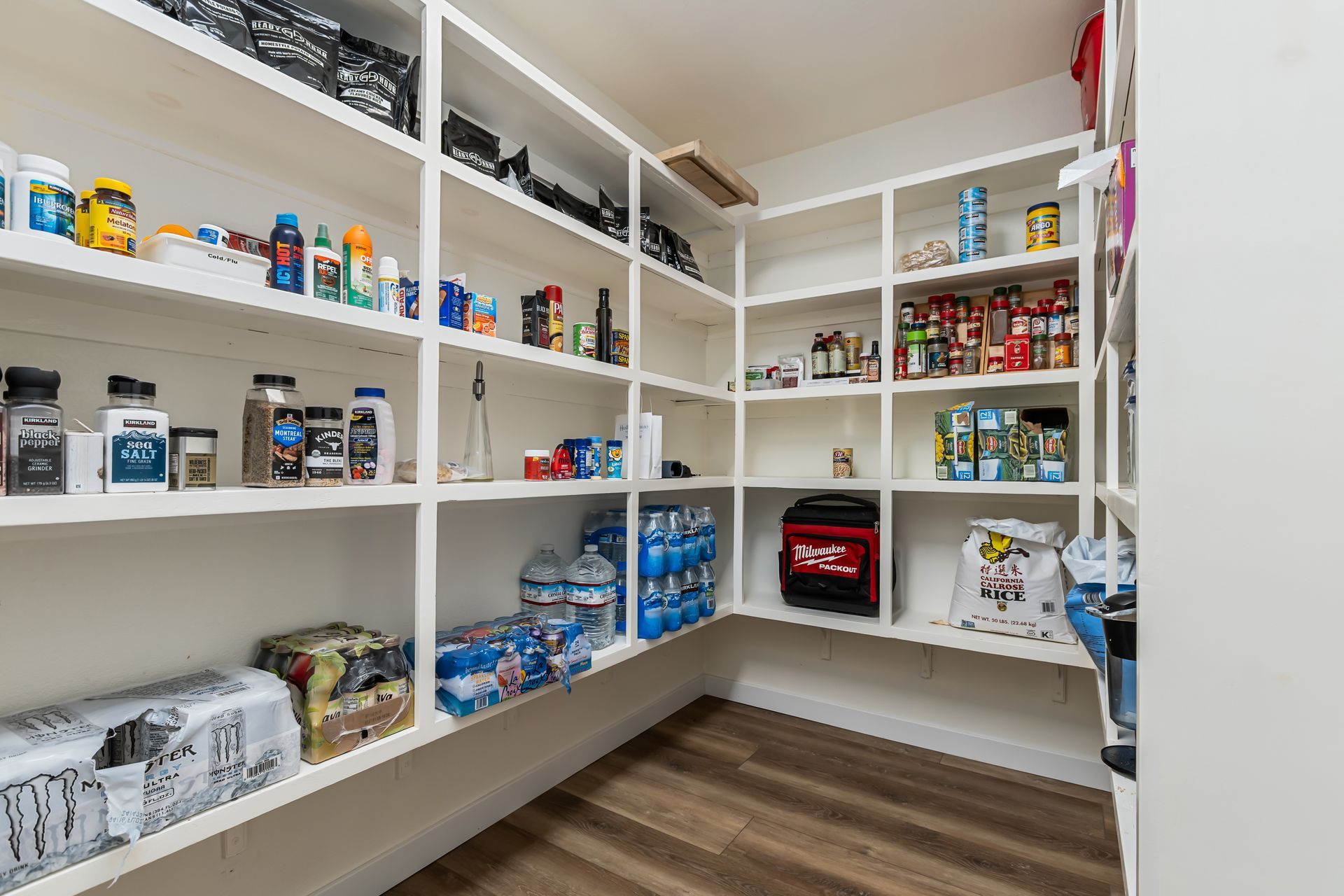 - Oversized 8’ x 12’ walk-in pantry with additional refrigerator cutout and hookups